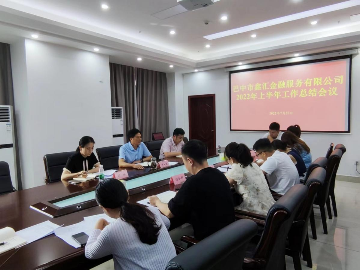 7月27日下午,巴中市鑫匯金融服務(wù)有限公司召開2022年半年工作總結(jié)會,總結(jié)上半年工作,安排部署下半年重點(diǎn)工作。公司黨總支書記、執(zhí)行董事、總經(jīng)理許大政主持會議并講話,全體職工參加會議。