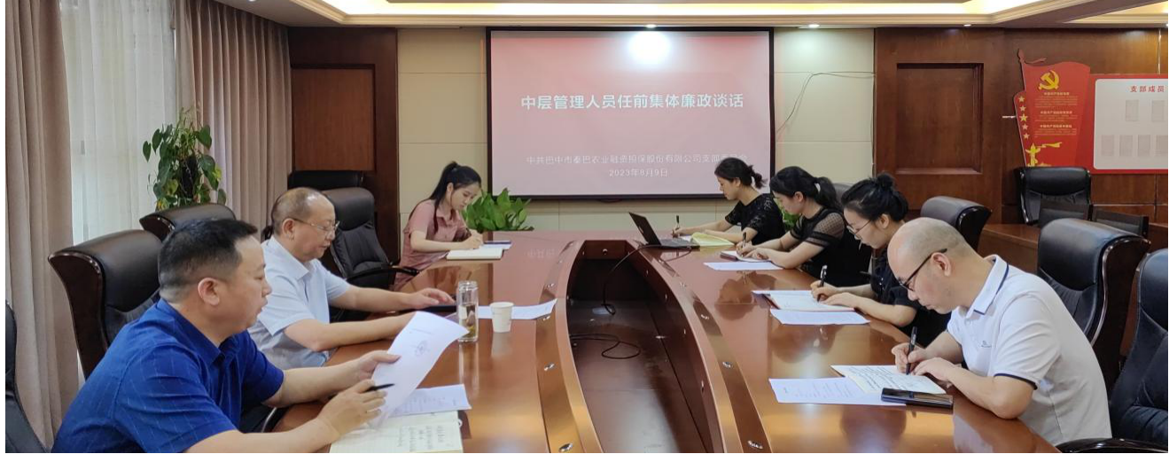 為深入貫徹落實(shí)黨的二十大精神,加強(qiáng)紀(jì)律作風(fēng)建設(shè),全面從嚴(yán)管黨治黨,持續(xù)正風(fēng)肅紀(jì),8月9日上午,市秦巴農(nóng)擔(dān)公司黨支部開展中層管理人員任前集體廉政談話。