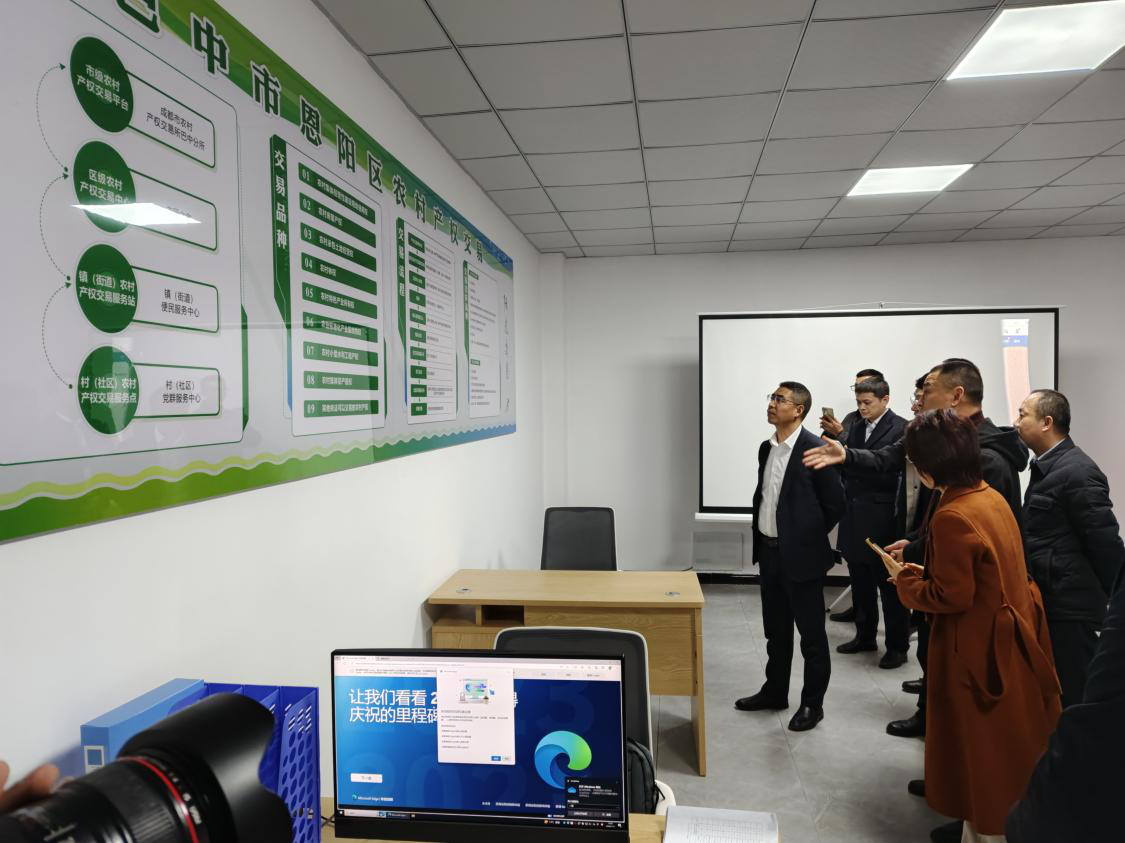 2024年1月11日,省政務(wù)服務(wù)和資源交易服務(wù)中心黨委委員、副主任舒新華帶隊(duì)對(duì)巴中市農(nóng)村產(chǎn)權(quán)交易工作進(jìn)行考察調(diào)研。省政務(wù)服務(wù)和資源交易服務(wù)中心、省農(nóng)業(yè)農(nóng)村廳、成都農(nóng)交所相關(guān)負(fù)責(zé)人參加調(diào)研活動(dòng)。市政務(wù)服務(wù)和資源交易服務(wù)中心、市農(nóng)業(yè)農(nóng)村局、巴中市鑫匯金融服務(wù)有限公司和成都農(nóng)交所巴中分公司相關(guān)負(fù)責(zé)人陪同調(diào)研。